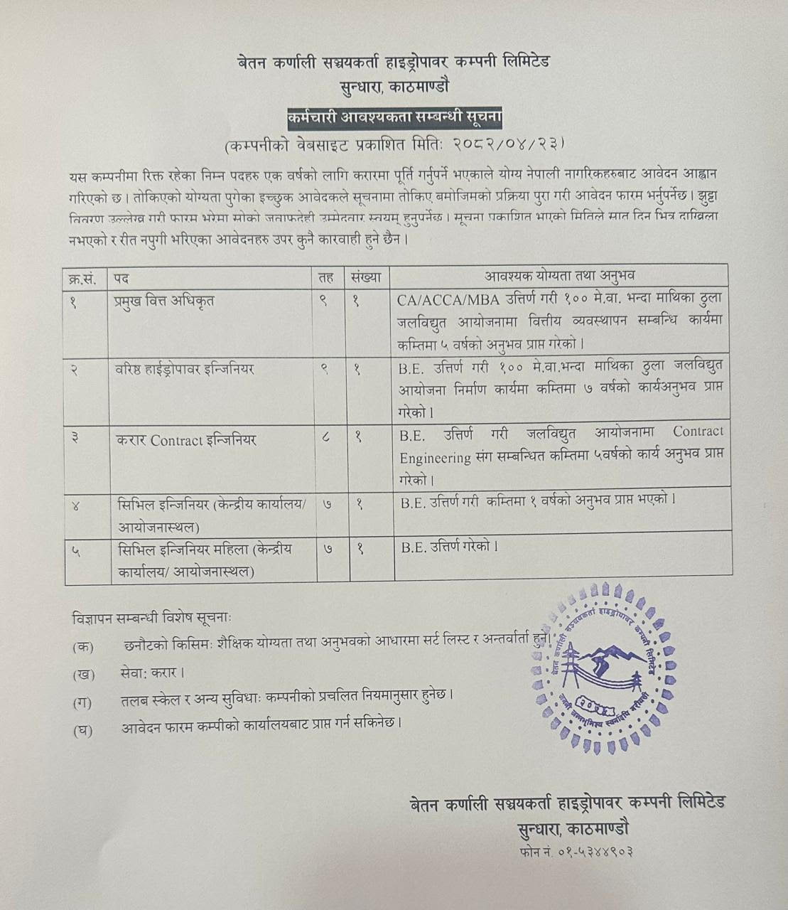 2082/04/23 - Vacancy for HR Head and C S